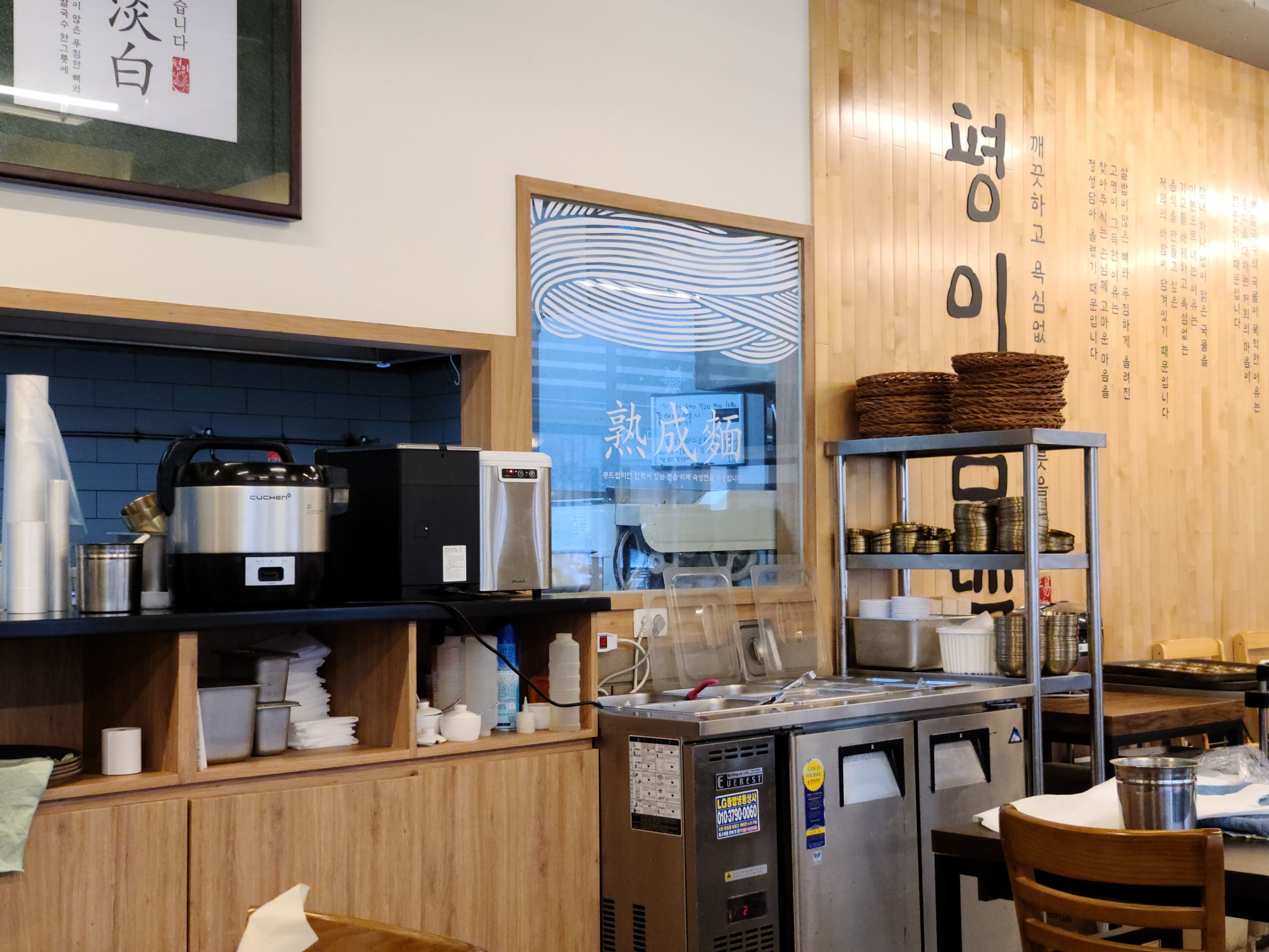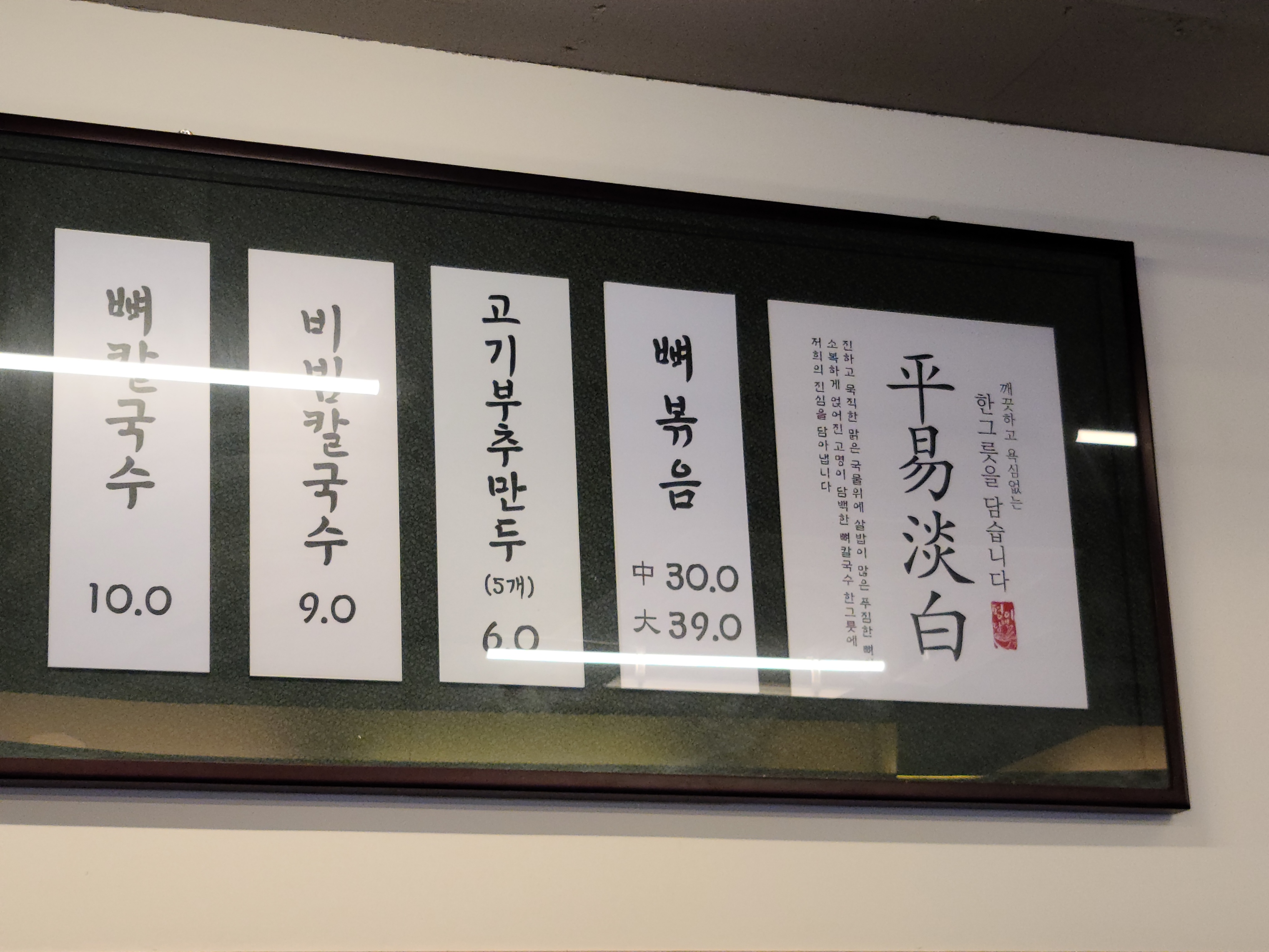 식당 안에 걸려있는 국수에 대한 글입니다.