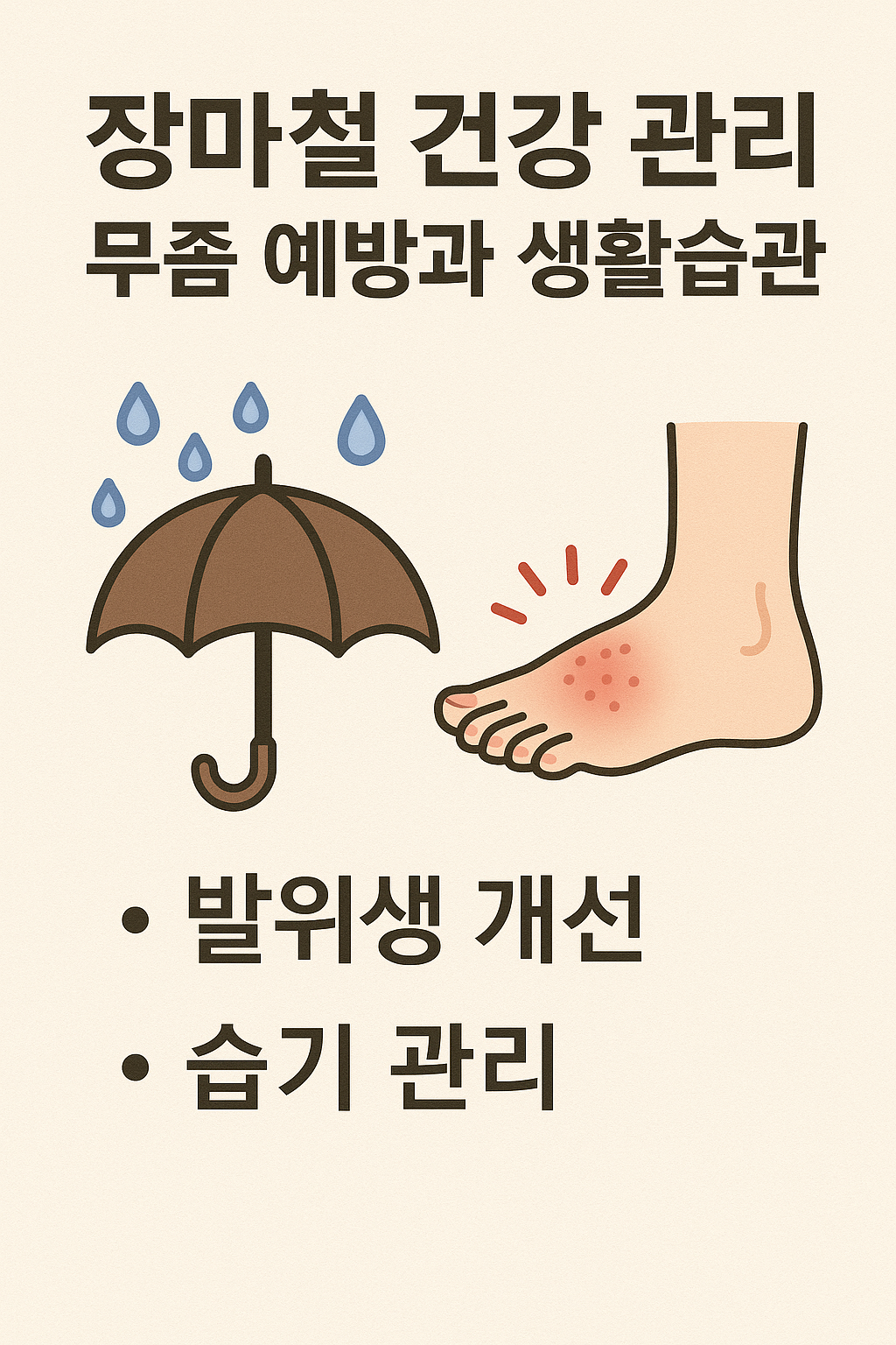 장마철처럼 고온다습한 환경에서는 아무리 사소한 습기라도 무좀균이 번식하기 쉬운 조건을 제공합니다.