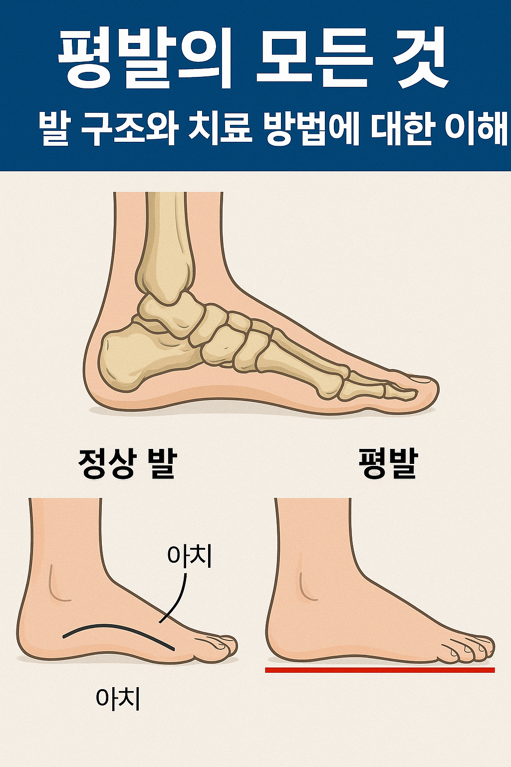 평발은 단순히 발의 구조적 특성을 의미하며, 특별한 치료 없이도 일상생활이 문제없이 가능한 경우가 많습니다.